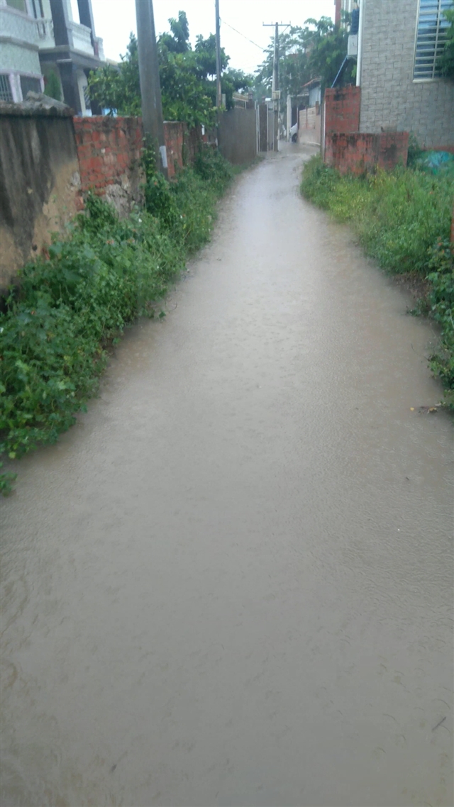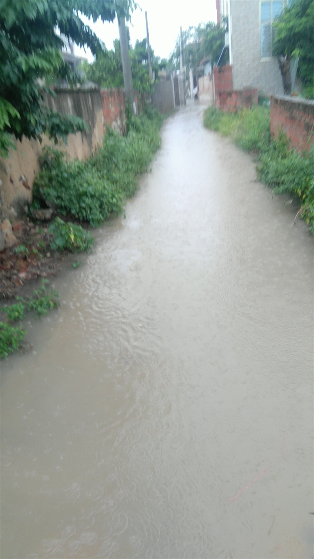 没有道路硬化排水,村民出行不便